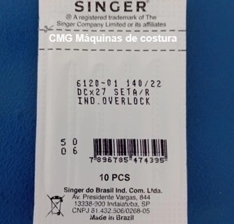 6120-22 Agulha DCx27 Singer Número 22 para Overloque / Interloque (Cartela com 10 agulhas)